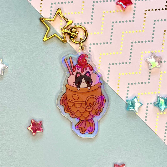 Kitty Taiyaki Sparkly Acrylic Keychain