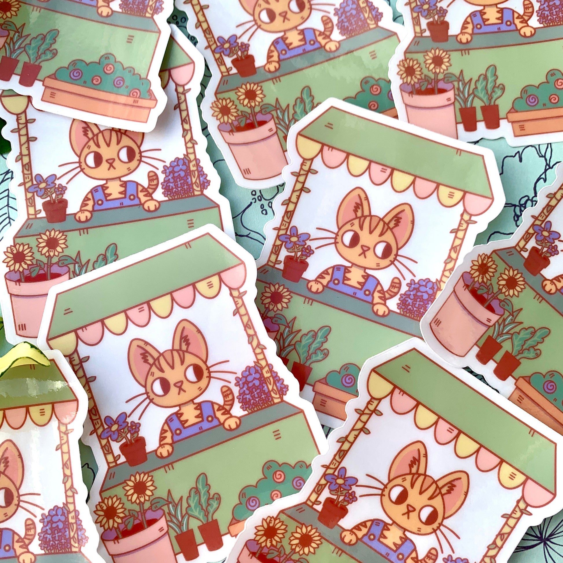 Add to your sticker collection with this cute little tabby cat and his flower shop!