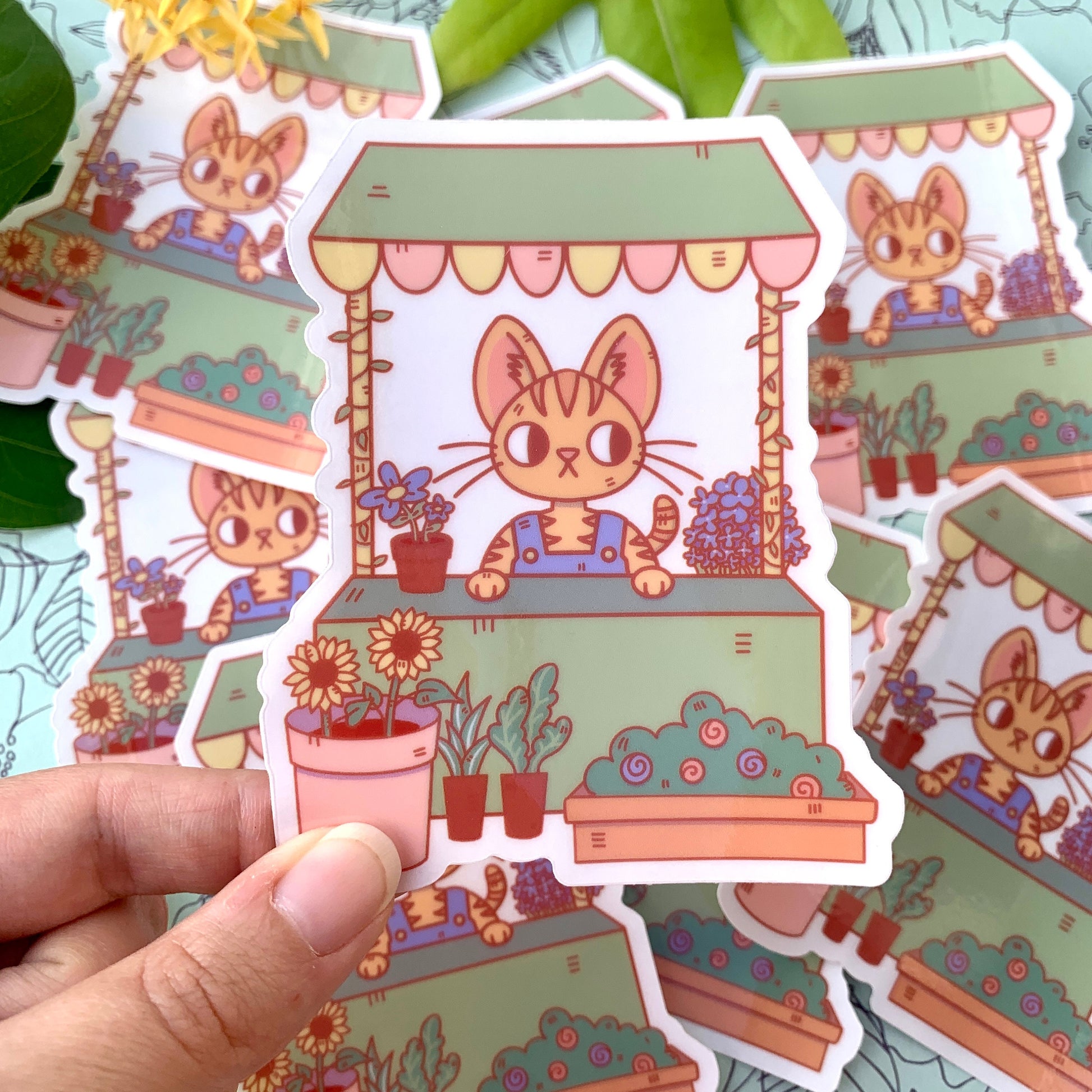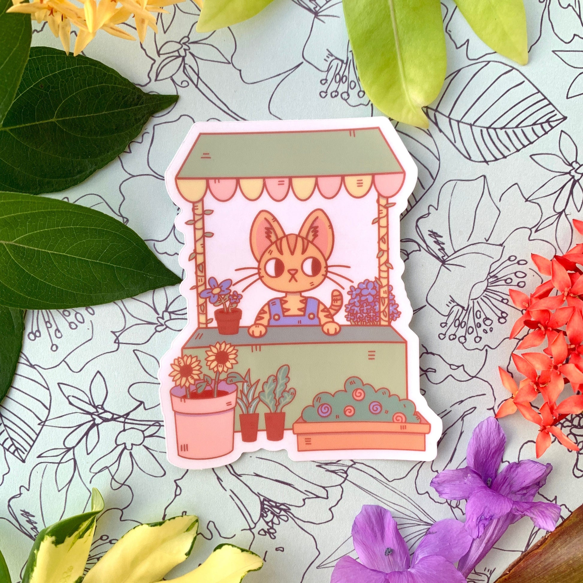 Flower Shop Cat Transparent Vinyl Sticker